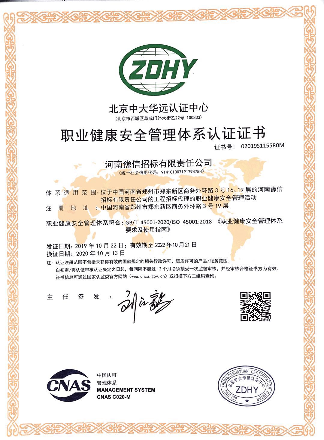 河南豫信招標有限責任公司OHSMSSMS中文證書