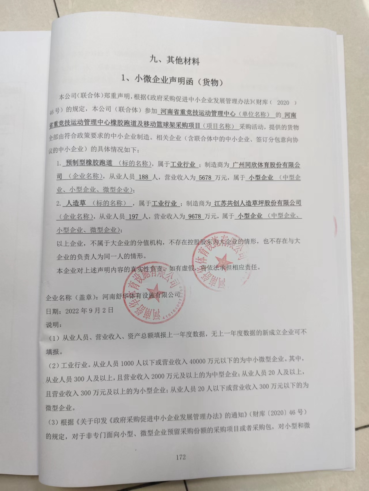 一、采購項目名稱:河南省重競技運動管理中心橡膠跑道及移動籃球架采購項目