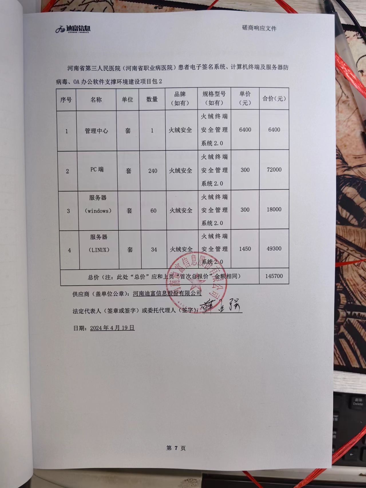 2、采購項目名稱:河南省第三人民醫(yī)院(河南省職業(yè)病醫(yī)院)患者電子簽名系統(tǒng)、計算機終端及服務器防病毒、OA辦公軟件支撐環(huán)境建設項目
