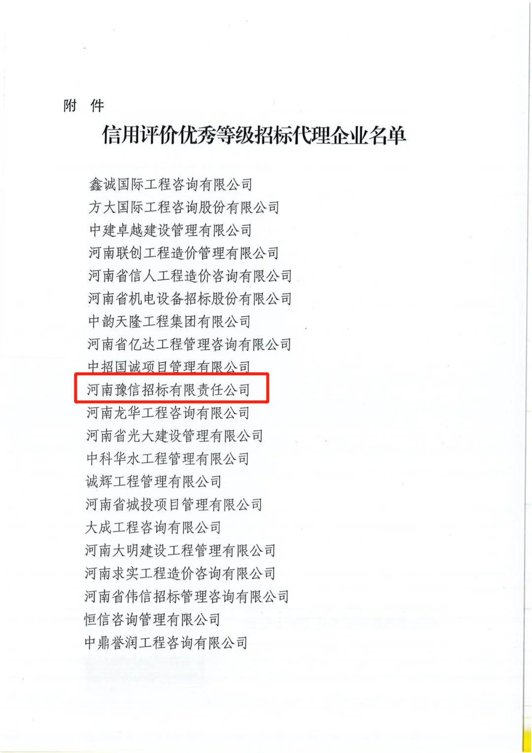 熱烈祝賀我公司獲得河南省住建廳評定“全省信用評價優(yōu)秀等級招標(biāo)代理“企業(yè)稱號。