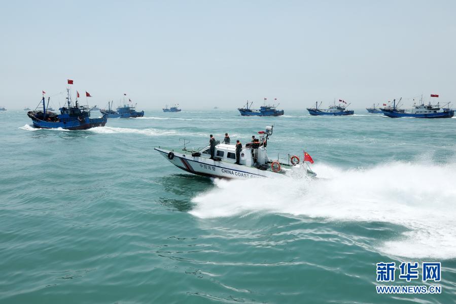 海警執(zhí)法員加強(qiáng)海域巡邏,防止黑惡勢(shì)力滋擾作業(yè)漁船(8月16日攝)。新華社發(fā)(翟少華 攝)