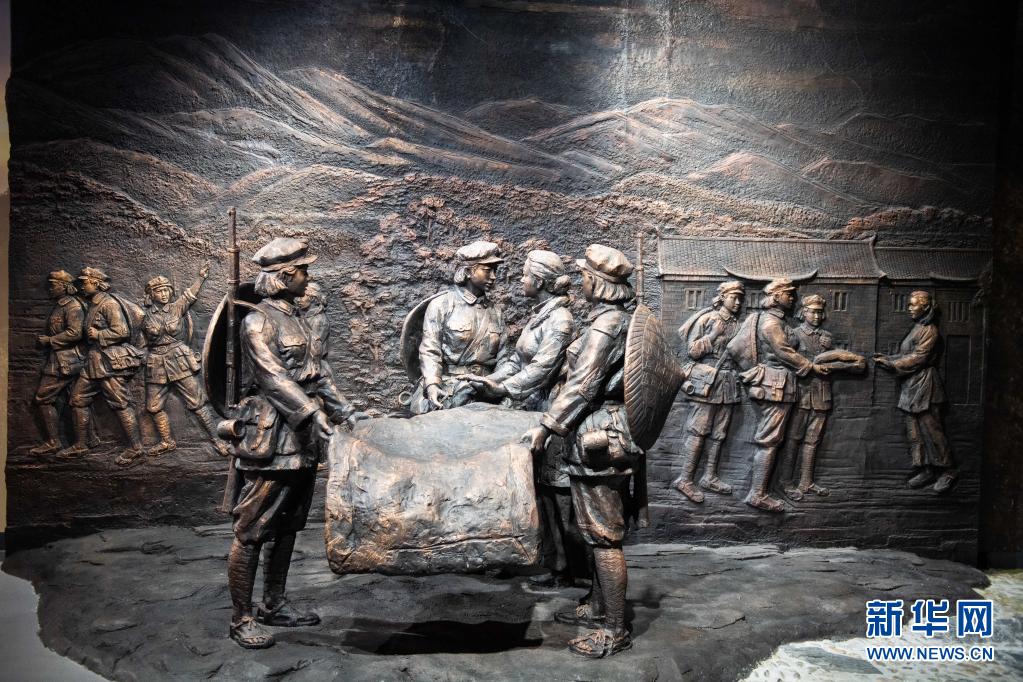 這是在湖南省郴州市汝城縣沙洲瑤族村半條被子的溫暖專題陳列館拍攝的半條被子故事雕塑(2020917日攝)。新華社記者 陳思汗 攝