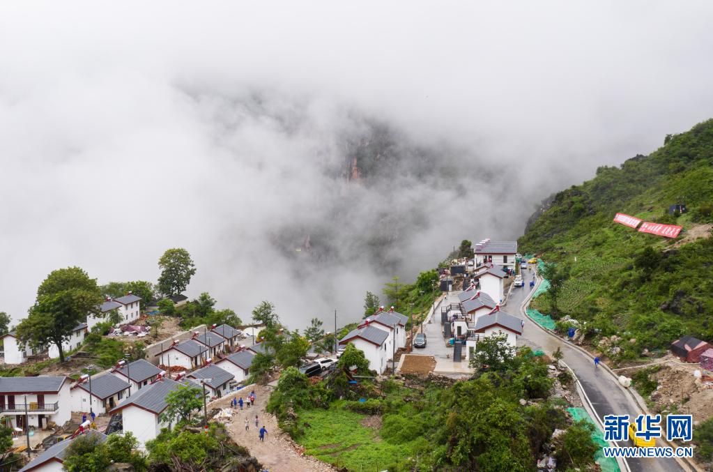 2020630日,一輛客運(yùn)面包車行駛在四川涼山州布拖縣阿布洛哈村新完工的村道上(無人機(jī)照片)。新華社記者 江宏景 攝