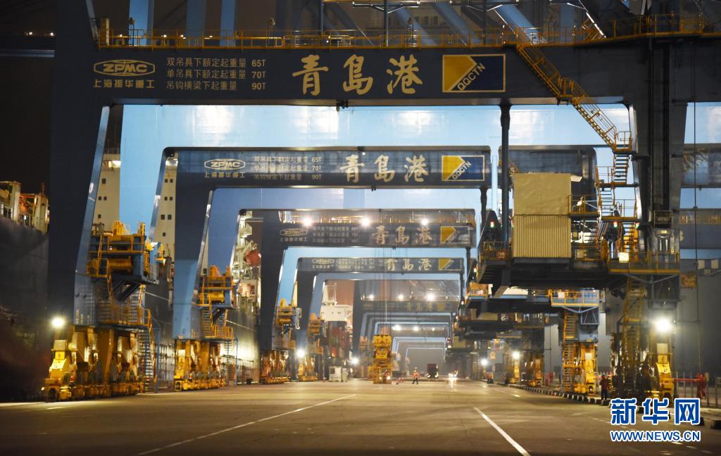 這是71日凌晨拍攝的山東港口青島港全自動化集裝箱碼頭。新華社記者 王凱 攝