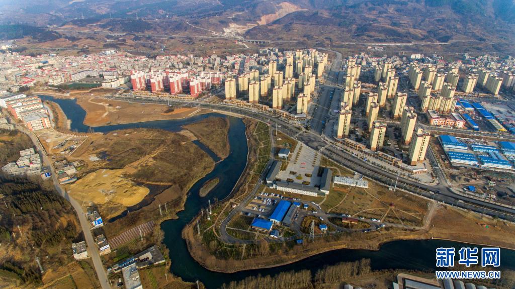 這是位于云南省昭通市境內(nèi)的跨縣易地搬遷安置區(qū)靖安新區(qū)(23日攝,無人機照片)。新華社記者 江文耀 攝