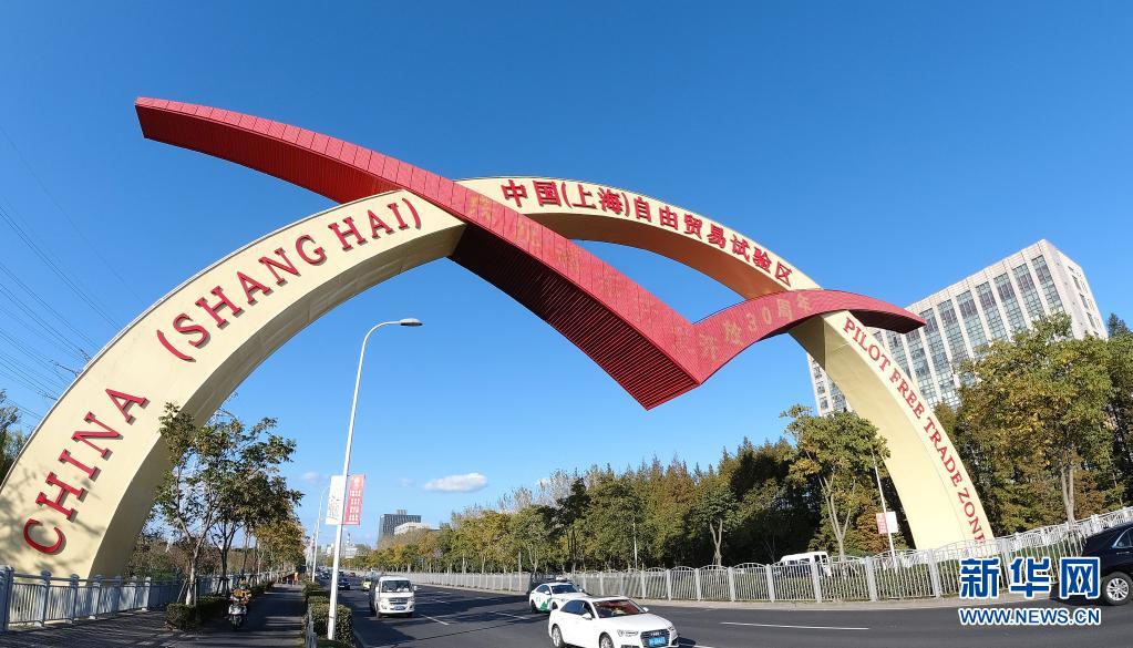 位于上海浦東新區(qū)楊高北路上的中國(上海)自由貿(mào)易試驗區(qū)標(biāo)志門(20201111日攝)。新華社記者 方喆 攝