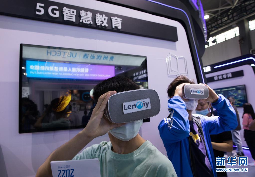 5月27日,在2021中國國際大數(shù)據(jù)產(chǎn)業(yè)博覽會展館,觀眾在體驗5G智慧教育項目。新華社記者 金立旺 攝