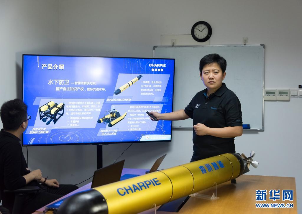 付斌向客戶介紹水下機(jī)器人產(chǎn)品(資料照片)。新華社發(fā)