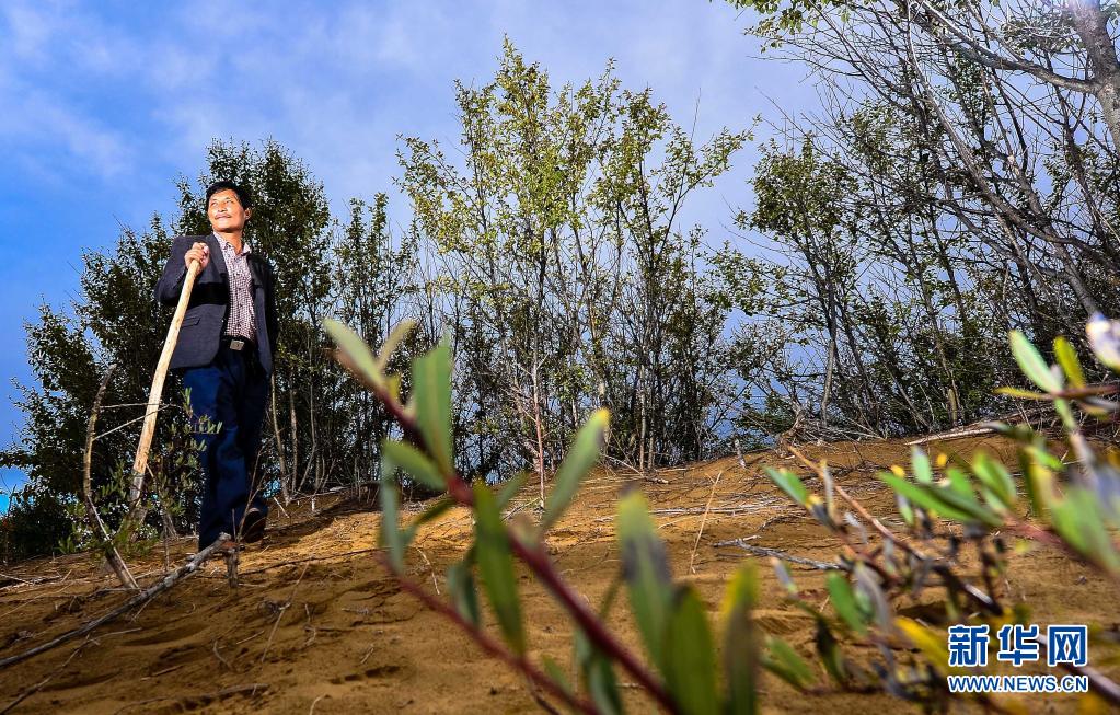 在青海省貴南縣森多鄉(xiāng),生態(tài)管護(hù)員吉本加在巡查黃沙頭防風(fēng)林(2013年9月10日攝)。新華社記者 吳剛 攝