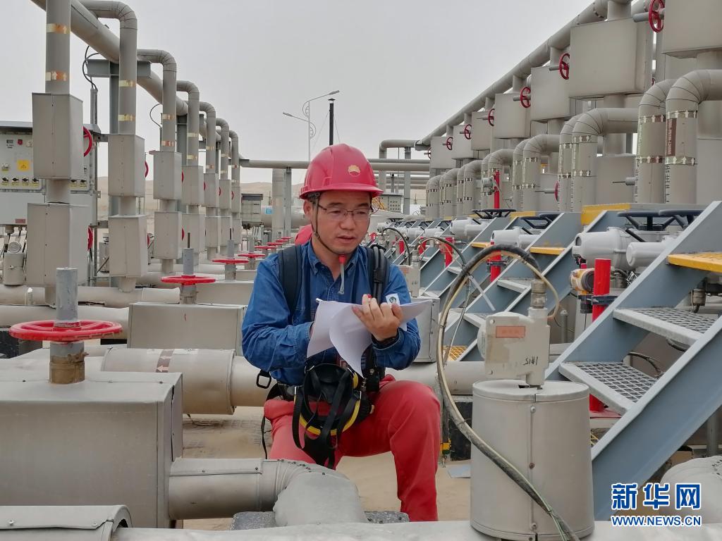 7月31日,馮光在塔里木油田塔中1號集氣站核對遠(yuǎn)傳工藝參數(shù)。新華社發(fā)