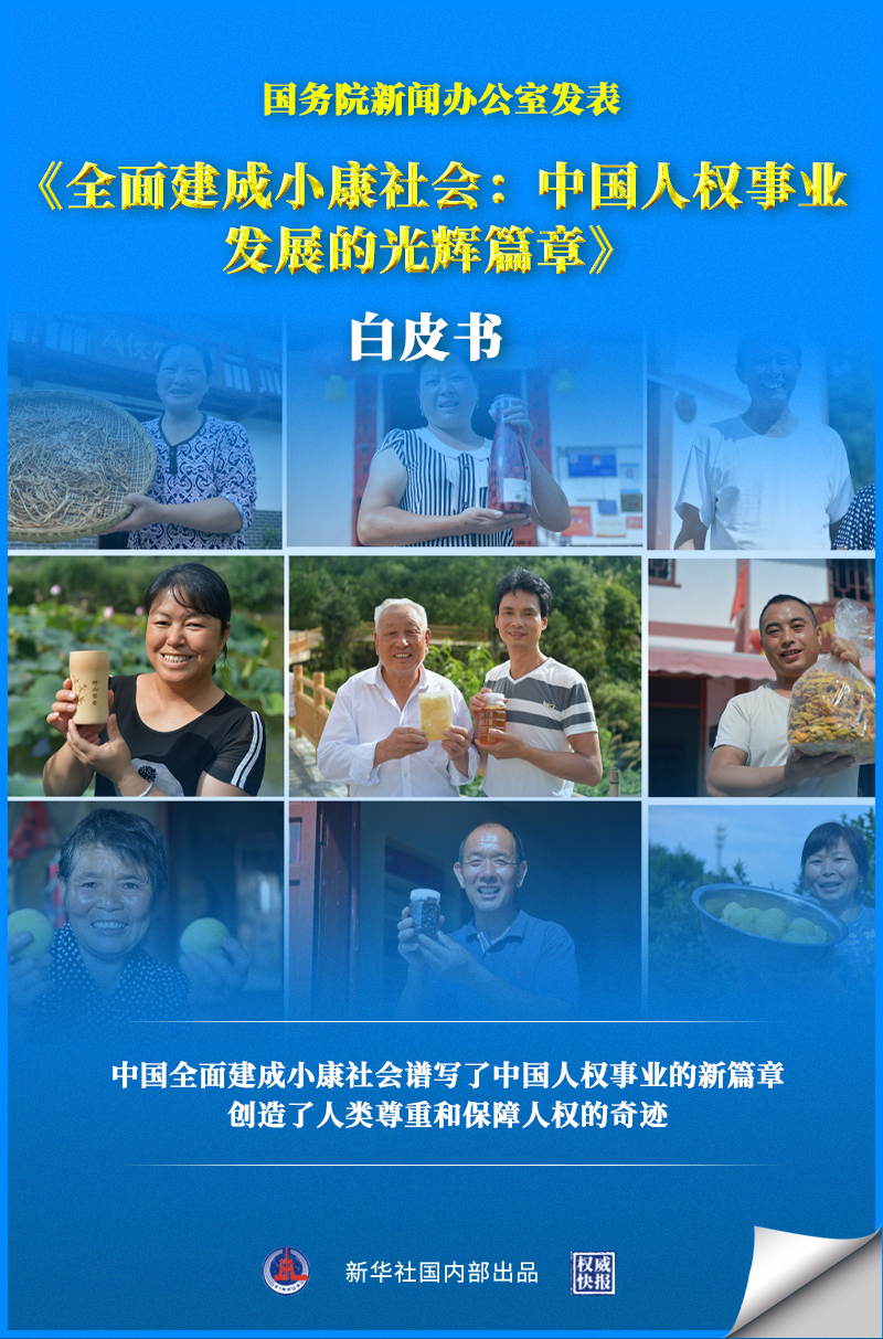 國(guó)務(wù)院新聞辦公室發(fā)表《全面建成小康社會(huì):中國(guó)人權(quán)事業(yè)發(fā)展的光輝篇章》白皮書