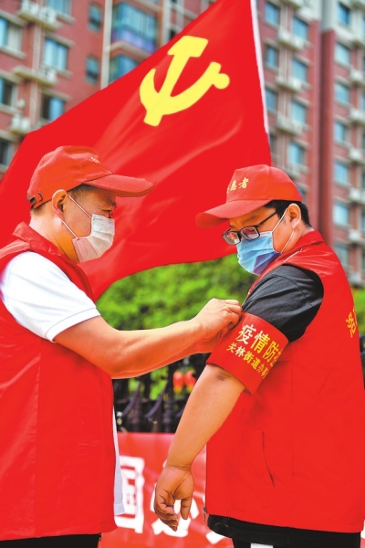 ??黨員志愿者堅(jiān)守疫情防控一線 本報(bào)資料圖片 張光輝 張俊望 攝