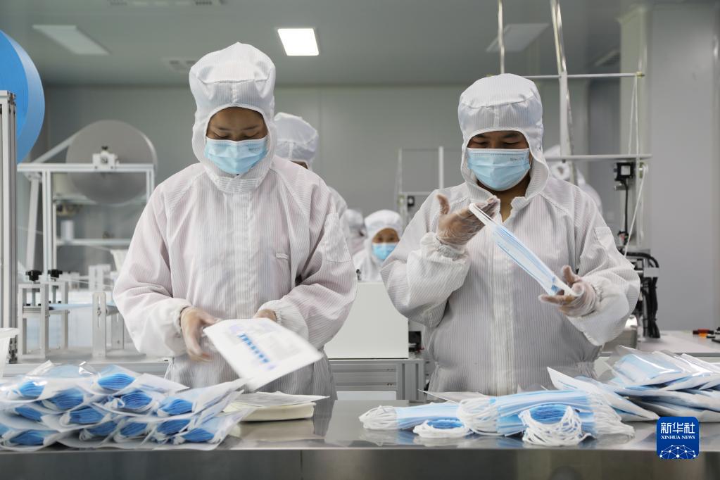 3月26日,在甘肅省臨夏市南龍鎮(zhèn)馬家莊村的甘肅陽光智家網(wǎng)絡(luò)科技有限公司醫(yī)用口罩生產(chǎn)車間內(nèi),工作人員在加工生產(chǎn)醫(yī)用口罩。2021年初,該公司與另外一家材料科技企業(yè)聯(lián)合研發(fā)的石墨烯口罩實(shí)現(xiàn)批量生產(chǎn)。新華社記者 馬莎 攝