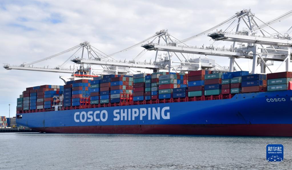 這是2019年2月27日在長灘港拍攝的一艘中國遠(yuǎn)洋運(yùn)輸集團(tuán)(COSCO)的集裝箱貨輪。新華社記者 李穎 攝