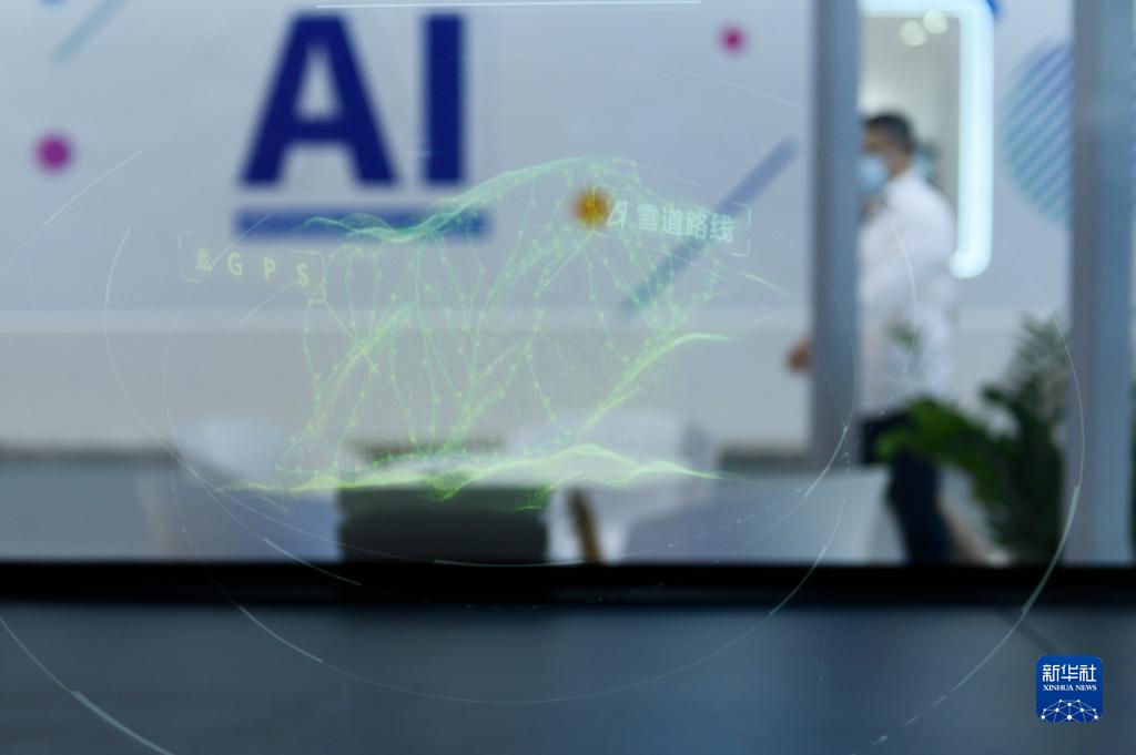 7月8日在2021世界人工智能大會(huì)上拍攝的密苑云頂樂園三維全息投影圖。新華社發(fā)(胡智軒 攝)