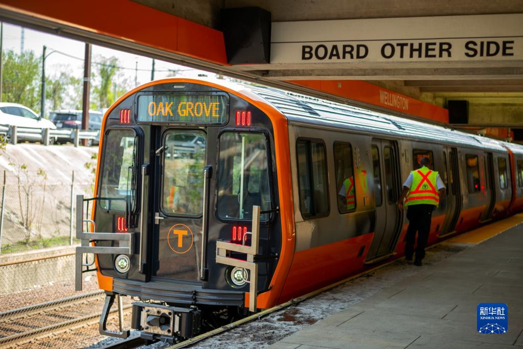 這是2018年5月15日在美國馬薩諸塞州梅德福德惠靈頓站拍攝的中車長客為波士頓橙線地鐵“量身訂制”的首批車輛。這批地鐵列車整車具有完全自主知識(shí)產(chǎn)權(quán),是中國首批依照美國標(biāo)準(zhǔn)生產(chǎn)的地鐵車輛。新華社記者 李木子 攝
