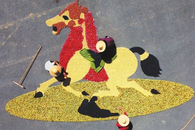 9月22日,在欒川老君山景區(qū),農家賓館經營者用山楂、甜棗、苦瓜、辣椒等農作物曬秋,造型生動。 本報記者 王錚 攝