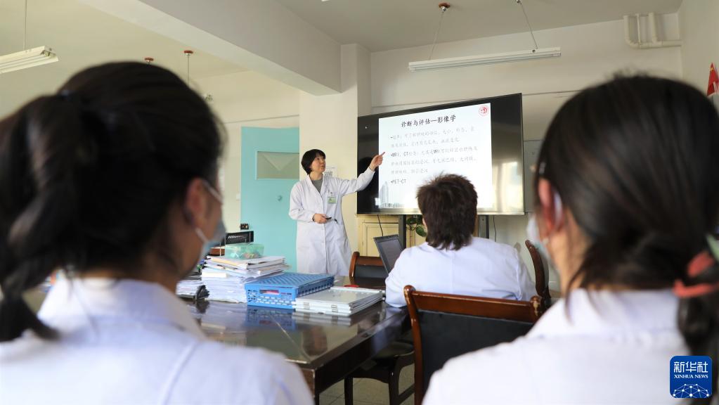 天津市中心婦產(chǎn)科醫(yī)院婦產(chǎn)專業(yè)副主任醫(yī)師饒陽為甘肅甘南藏族自治州人民醫(yī)院婦產(chǎn)科的醫(yī)生進行培訓(xùn)(1月15日攝)。新華社記者 張睿 攝