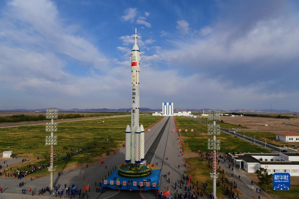 10月7日,神舟十三號(hào)載人飛船與長(zhǎng)征二號(hào)F遙十三運(yùn)載火箭組合體準(zhǔn)備轉(zhuǎn)往發(fā)射區(qū)。新華社發(fā)(汪江波 攝)