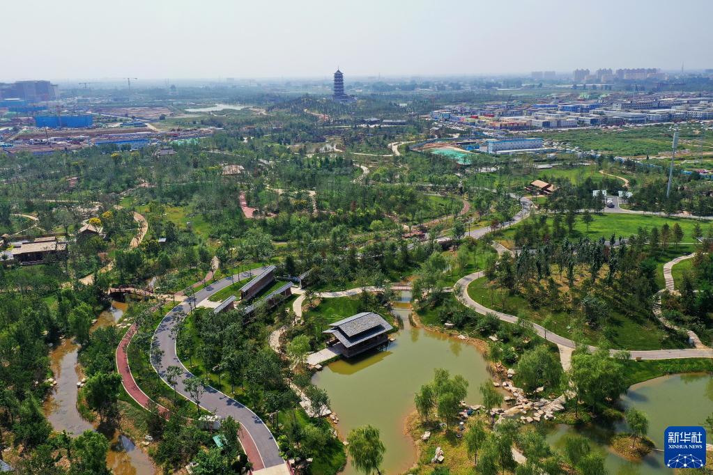 這是雄安新區(qū)悅容公園北苑內的景色(9月1日攝,無人機照片)。新華社記者 牟宇 攝