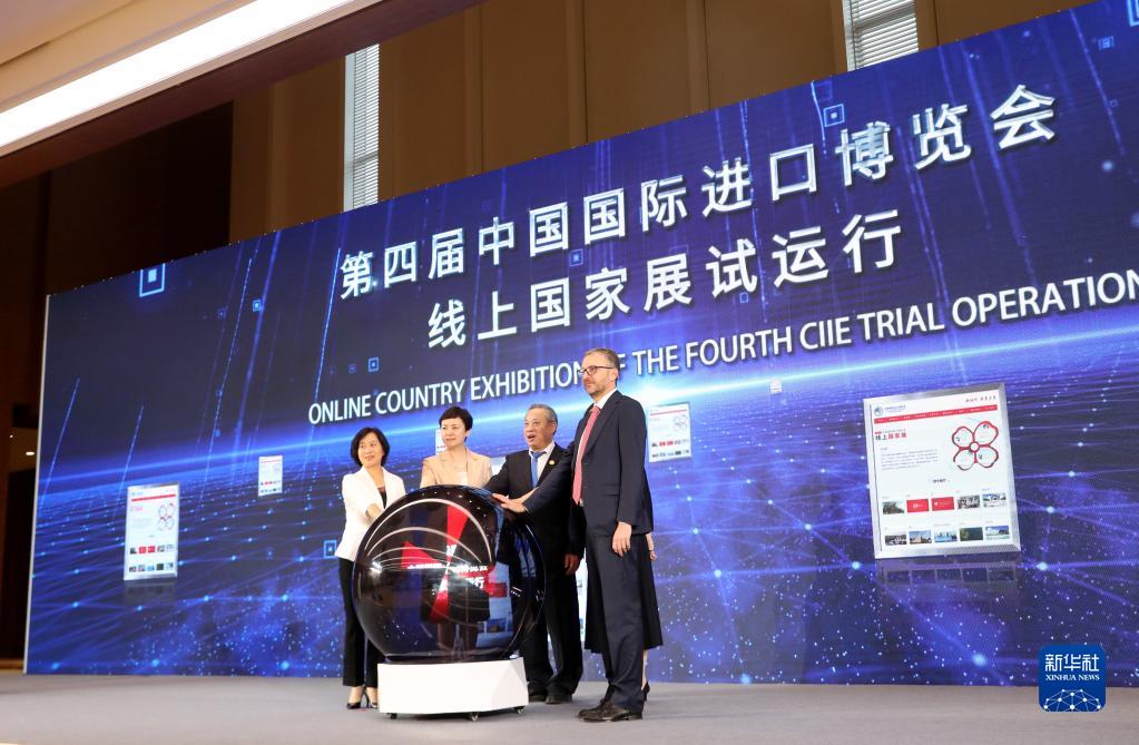 10月13日,第四屆中國國際進(jìn)口博覽會線上國家展試運行啟動儀式在國家會展中心(上海)舉行。新華社記者 方喆 攝