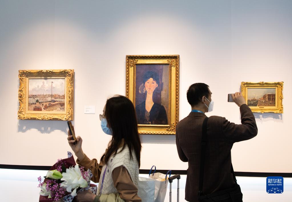 11月7日,觀眾在第四屆進(jìn)博會服務(wù)貿(mào)易展區(qū)佳士得展位參觀拍攝。第四屆進(jìn)博會在服務(wù)貿(mào)易展區(qū)首設(shè)文物藝術(shù)品專區(qū)。新華社記者 鄔惠我 攝