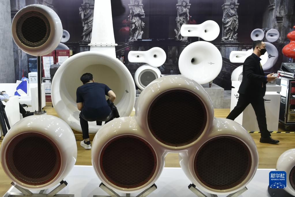 11月6日,參會者在第四屆進(jìn)博會展館里的意大利PEQUOD公司展位參觀音響設(shè)備。PEQUOD公司首次參展進(jìn)博會。新華社記者 魯鵬 攝