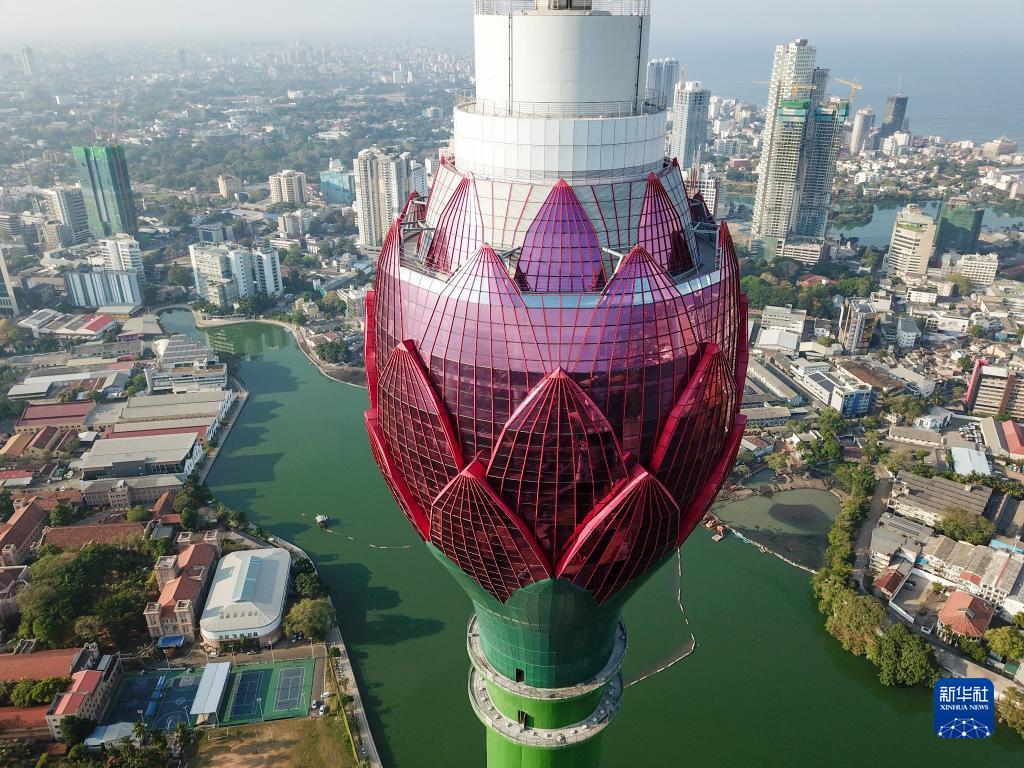 這是無人機航拍的斯里蘭卡科倫坡蓮花電視塔(2019年4月10日攝)??苽惼律徎娨曀侵兴箖蓢凇耙粠б宦贰苯ㄔO(shè)中的重要合作項目。新華社記者 郭磊 攝