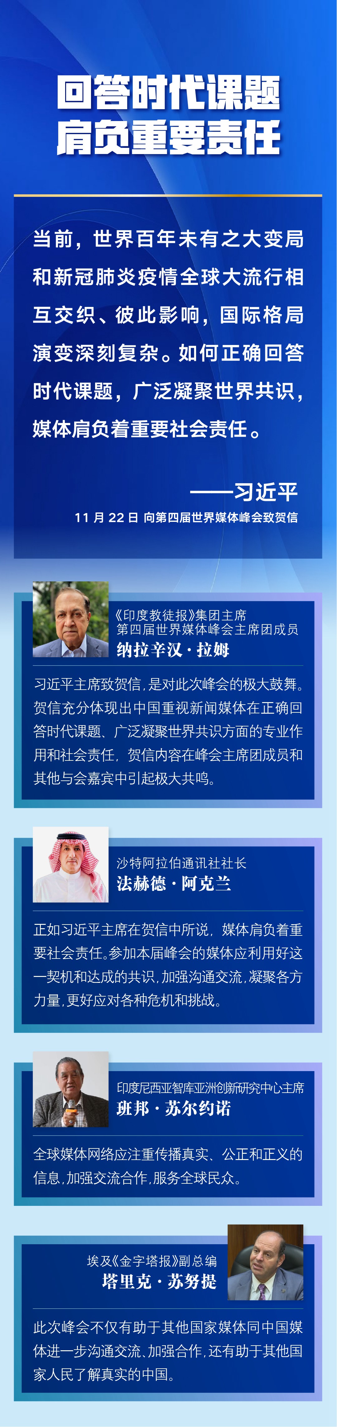 多國媒體人士認為,習(xí)近平主席的賀信對全球媒體更好肩負社會責(zé)任、廣泛凝聚世界共識作出重要闡述,為新形勢下世界媒體加強交流與合作、弘揚全人類共同價值、推動構(gòu)建人類命運共同體注入新的推動力——