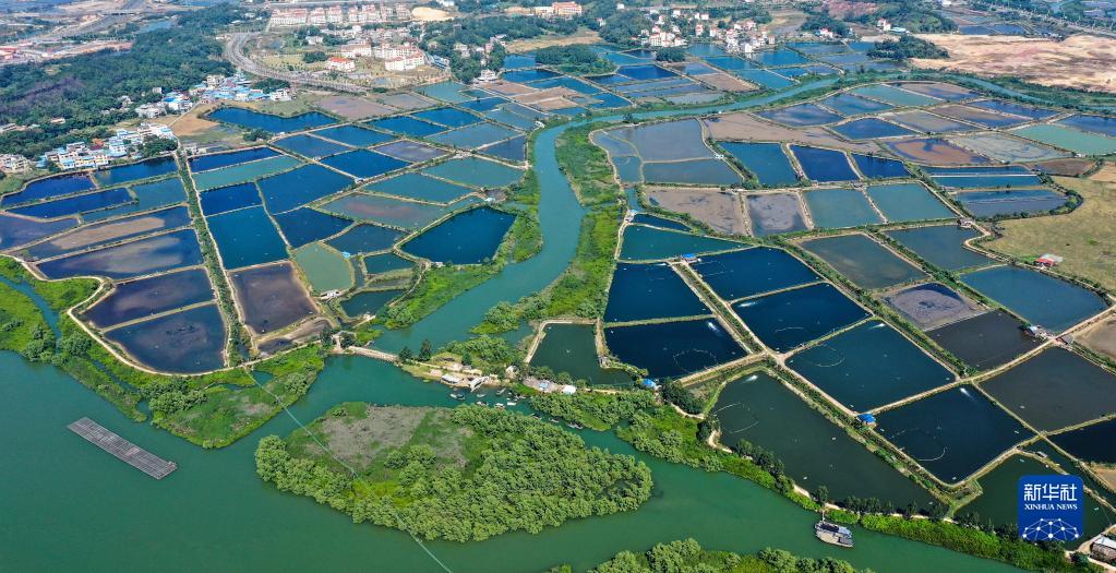 這是廣西欽州市欽南區(qū)沙埠鎮(zhèn)船埠環(huán)村的冬日蝦塘景色(11月25日攝,無人機(jī)照片)。新華社記者 張愛林 攝