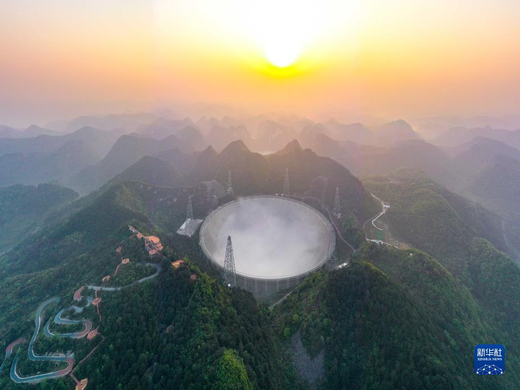 3月31日清晨拍攝的“中國天眼”全景(維護(hù)保養(yǎng)期間拍攝,無人機(jī)照片)。新華社記者 歐東衢 攝