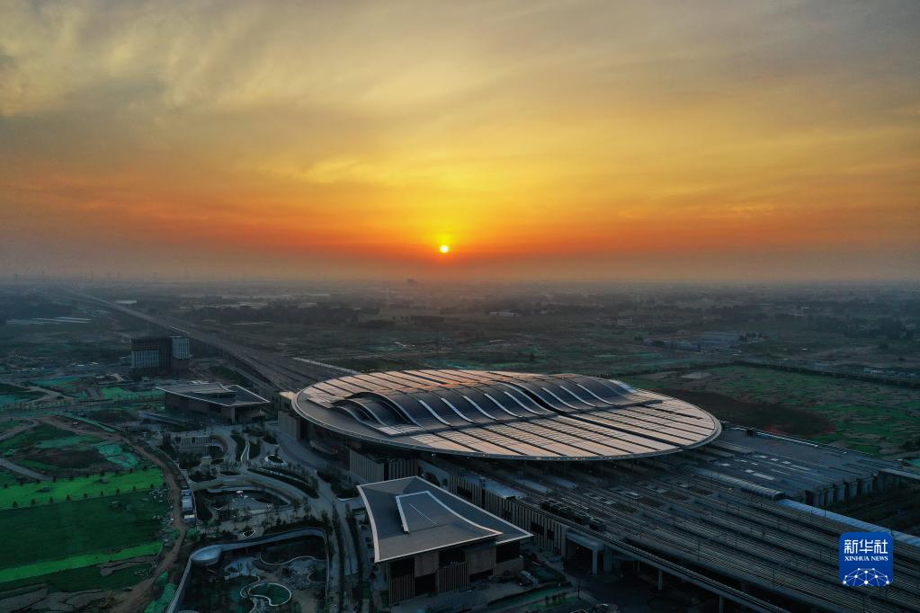 這是京雄城際鐵路雄安站(7月1日攝,無人機(jī)照片)。新華社記者 牟宇 攝