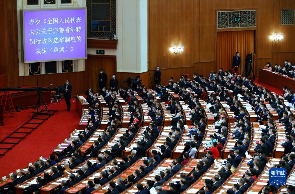 3月11日,十三屆全國人大四次會議表決通過《全國人民代表大會關(guān)于完善香港特別行政區(qū)選舉制度的決定》。這是繼制定實施香港國安法后,中央依法治港的又一重大舉措,是完善“一國兩制”制度體系、落實中央對香港全面管治權(quán)的具體體現(xiàn),為全面落實“愛國者治港”原則提供了更加堅實的制度保障。3月30日,十三屆全國人大常委會第二十七次會議通過了新修訂的香港基本法附件一和附件二。隨后,香港特別行政區(qū)完成本地立法。新選舉制度為推進香港民主穩(wěn)步發(fā)展、實現(xiàn)良政善治,促進“一國兩制”實踐行穩(wěn)致遠打下堅實基礎(chǔ)。
