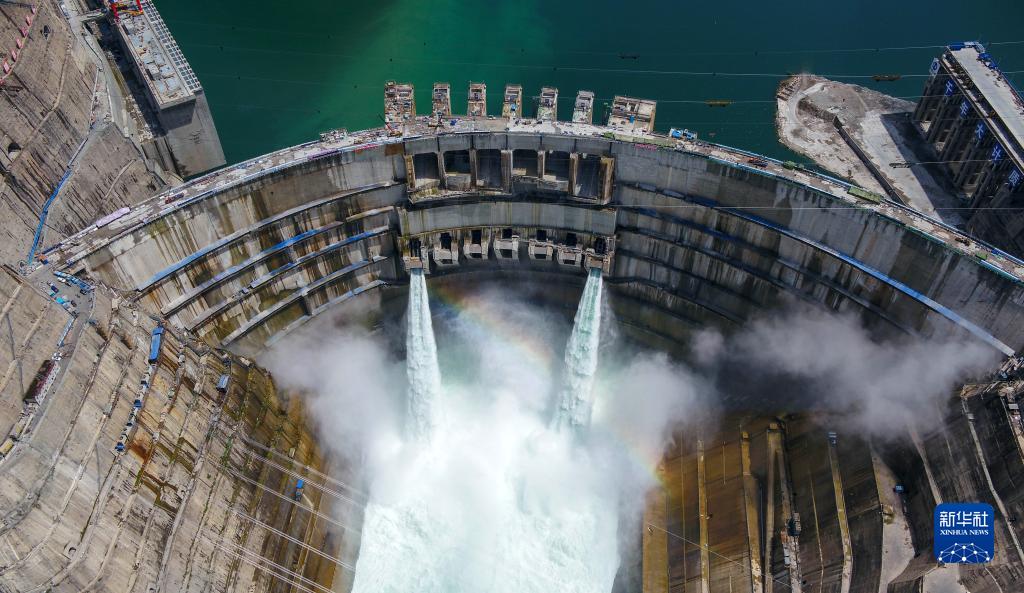 這是2021年6月10日拍攝的金沙江白鶴灘水電站。白鶴灘水電站是實施“西電東送”的國家重大工程,是當(dāng)今世界在建規(guī)模最大、技術(shù)難度最高的水電工程(無人機照片)。新華社記者 胥冰潔 攝