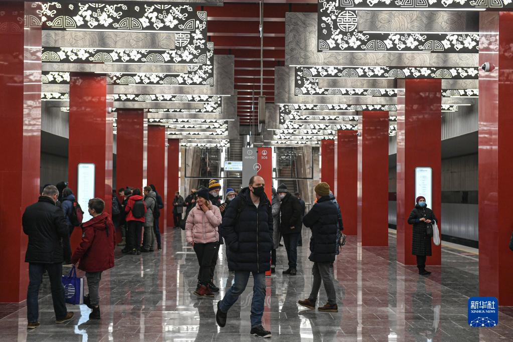 2021年12月7日,在俄羅斯首都莫斯科,乘客走在莫斯科地鐵第三換乘環(huán)線西南段米丘林大街站內(nèi)。中企在俄羅斯承建的首個(gè)地鐵項(xiàng)目——莫斯科地鐵第三換乘環(huán)線西南段項(xiàng)目當(dāng)日開通。新華社發(fā)(葉甫蓋尼·西尼岑 攝)