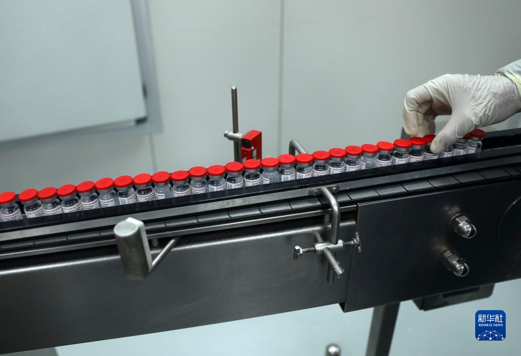 2021年10月5日,在馬來西亞吉隆坡郊區(qū)的發(fā)馬公司灌裝工廠,工人包裝本地灌裝生產(chǎn)的中國科興新冠疫苗。新華社記者 朱煒 攝