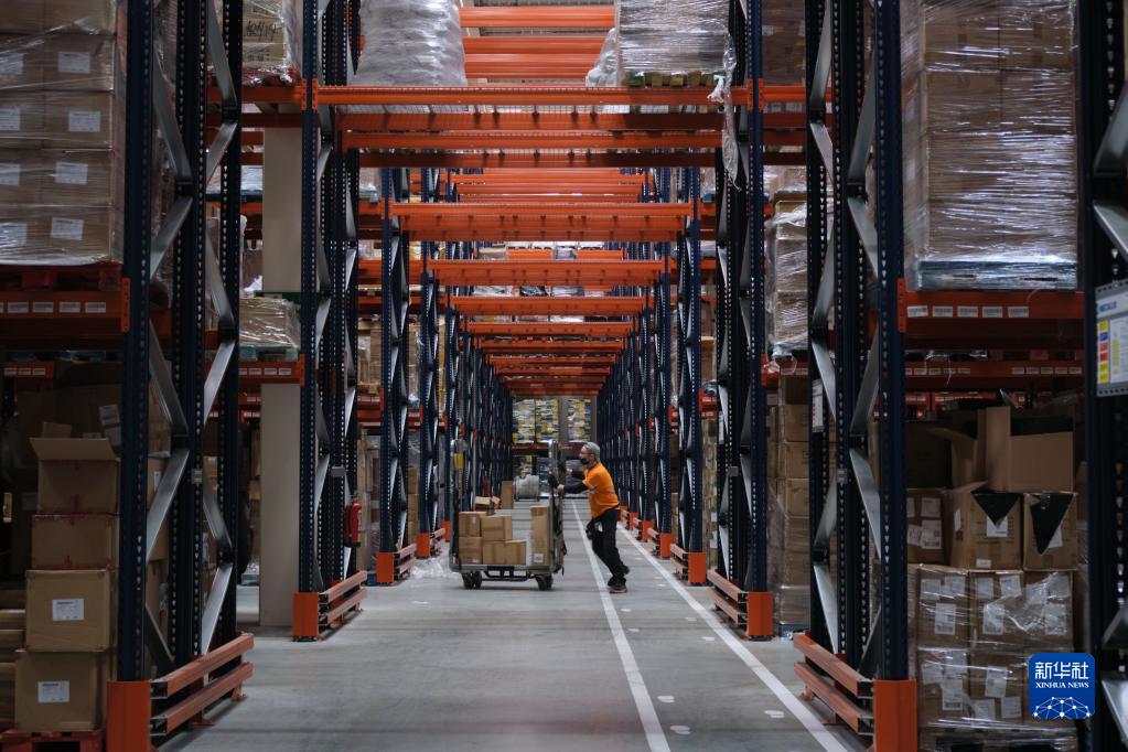 2021年11月11日,工作人員在西班牙瓜達(dá)拉哈拉市的菜鳥網(wǎng)絡(luò)所設(shè)立的海外倉中工作。新華社記者 孟鼎博 攝