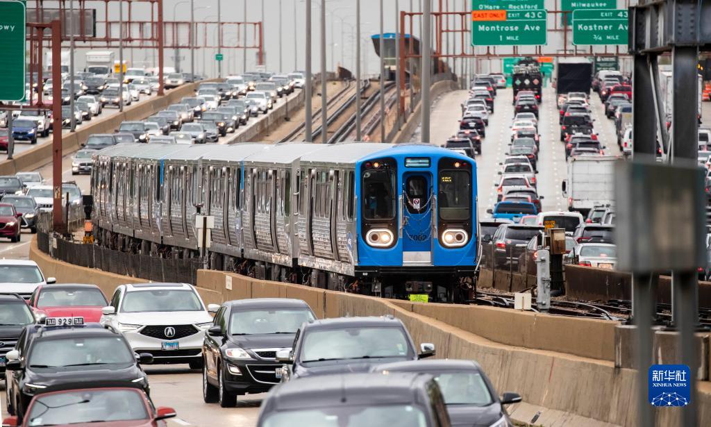 2021年5月6日,掛有7000系列車廂的地鐵列車在美國芝加哥載客試運(yùn)行。7000系列地鐵車廂由中國中車青島四方機(jī)車車輛股份有限公司(中車四方)在美國制造組裝。新華社發(fā)(喬爾·萊納 攝)