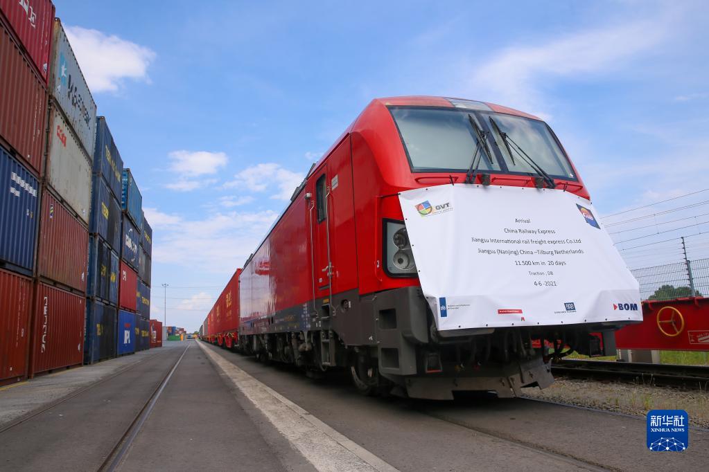 2021年6月4日,首趟從中國江蘇南京至荷蘭蒂爾堡的中歐班列抵達(dá)荷蘭蒂爾堡。新華社記者 鄭煥松 攝