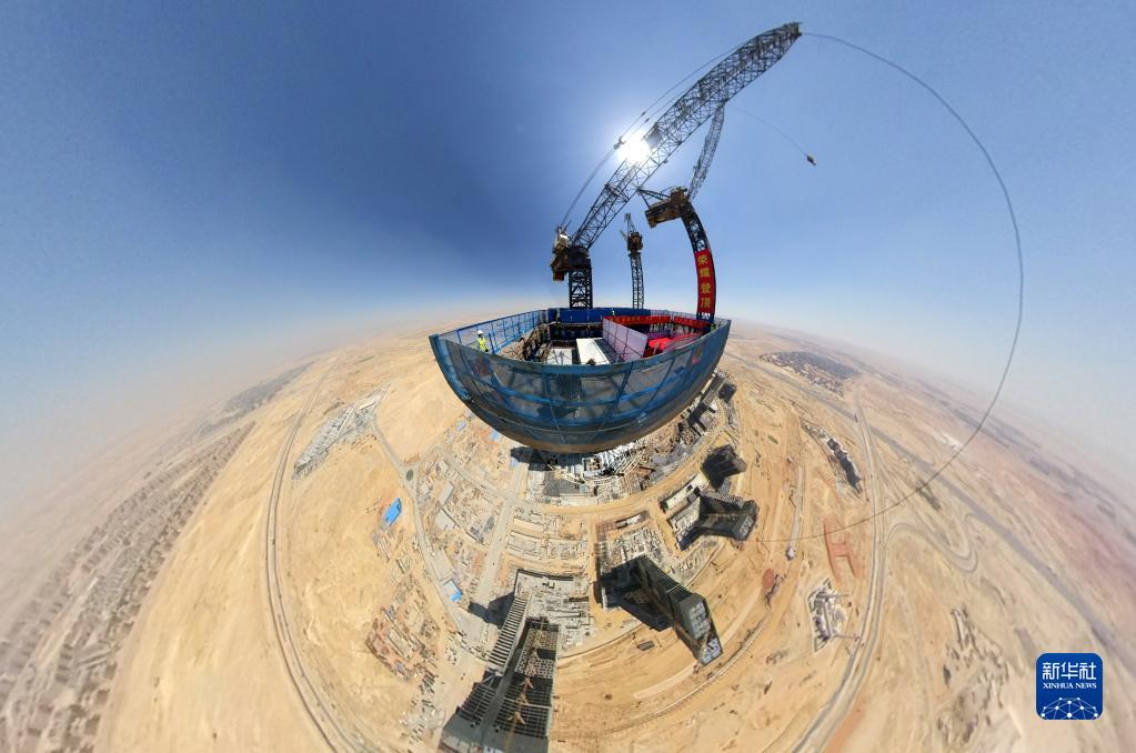 這是2021年6月17日在埃及開羅附近拍攝的埃及新行政首都中央商務(wù)區(qū)標(biāo)志塔(全景相機(jī)拍攝)。埃及新行政首都中央商務(wù)區(qū)位于首都開羅以東約50公里處,由中國建筑股份有限公司埃及分公司承建。新華社記者 隋先凱 攝