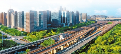 高鐵列車從鄭州東站附近縱橫交錯(cuò)的高鐵線路中穿過。本報(bào)資料圖片