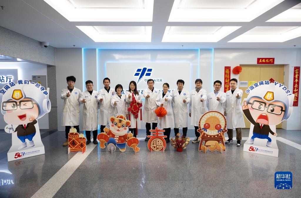 1月30日,在航天科技集團五院在軌航天器支持中心數(shù)字空間站外,空間站任務飛控試驗隊科研人員合影留念。新華社記者 金立旺 攝