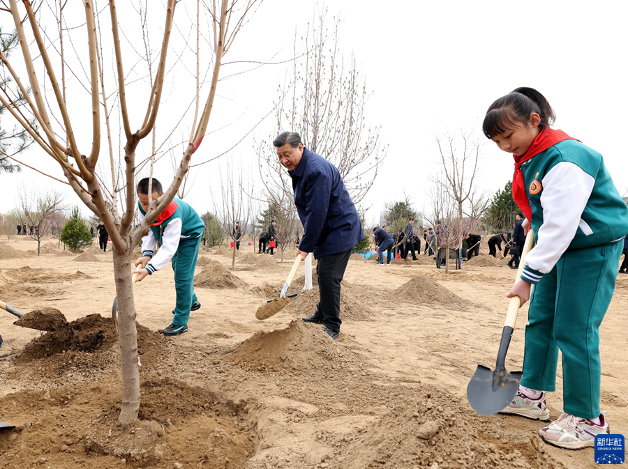 在京中共中央政治局委員、中央書記處書記、國務委員等參加植樹活動。