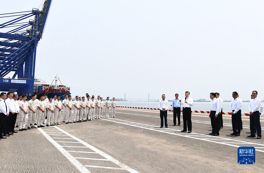 隨后,習(xí)近平來到洋浦國際集裝箱碼頭小鏟灘港區(qū),了解港口建設(shè)發(fā)展情況,同現(xiàn)場(chǎng)作業(yè)人員、掛職干部代表等親切交流。習(xí)近平強(qiáng)調(diào),振興港口、發(fā)展運(yùn)輸業(yè),要把握好定位,增強(qiáng)適配性,堅(jiān)持綠色發(fā)展、生態(tài)優(yōu)先,推動(dòng)港口發(fā)展同洋浦經(jīng)濟(jì)開發(fā)區(qū)、自由貿(mào)易港建設(shè)相得益彰、互促共進(jìn),更好服務(wù)建設(shè)西部陸海新通道、共建“一帶一路”。他指出,黨中央選派干部來自由貿(mào)易港掛職,既體現(xiàn)了黨中央對(duì)自由貿(mào)易港建設(shè)的關(guān)心和支持,也是對(duì)干部的培養(yǎng)鍛煉,要發(fā)揮掛職干部的積極作用,讓他們?cè)诨鶎右痪€增長(zhǎng)才干。