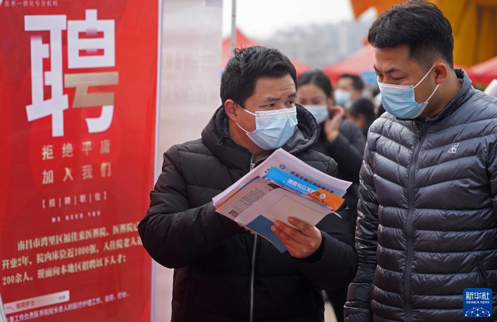 2月25日,江西省南昌市灣里管理局開展“春風(fēng)行動(dòng)”線下招聘活動(dòng)。這是求職者在招聘會(huì)現(xiàn)場交流。新華社記者 萬象 攝