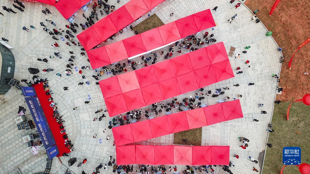 這是3月10日在長沙望城經(jīng)開區(qū)銅官工業(yè)園拍攝的招聘活動現(xiàn)場(無人機(jī)照片)。新華社記者 陳澤國 攝