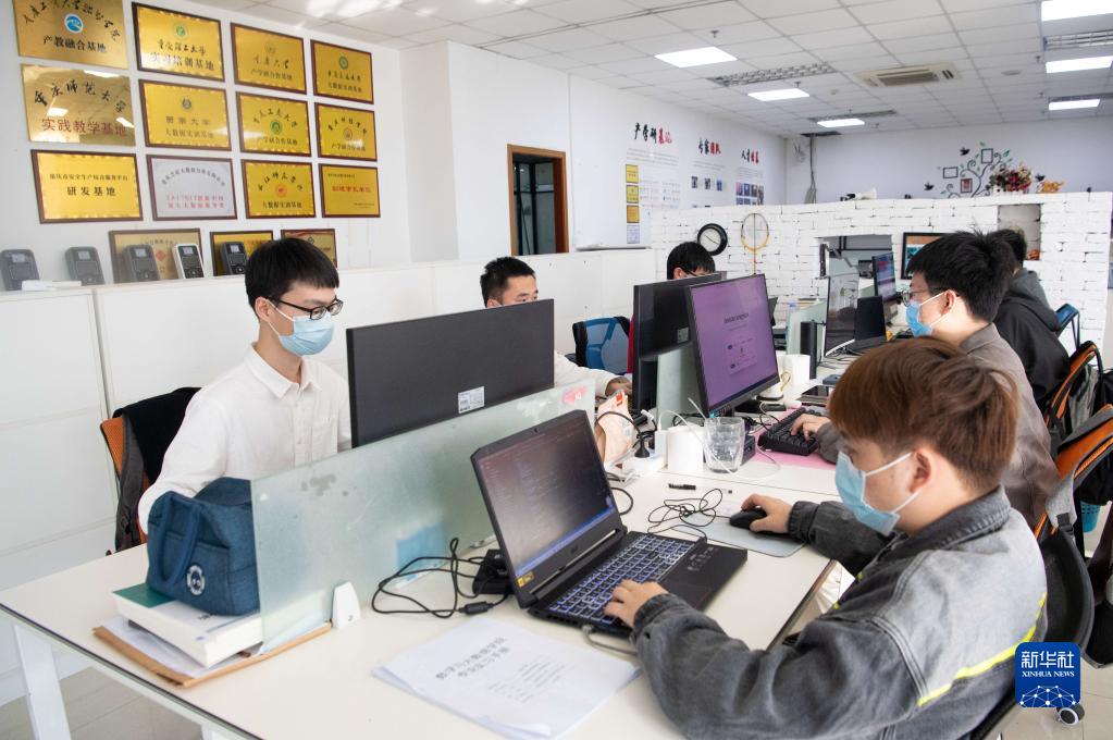 在位于重慶大渡口的“大眾創(chuàng)業(yè)萬眾創(chuàng)新示范基地”內(nèi),大學(xué)畢業(yè)生和青年人才在一家名為重慶芝諾的大數(shù)據(jù)公司內(nèi)工作(3月28日攝)。新華社記者 唐奕 攝