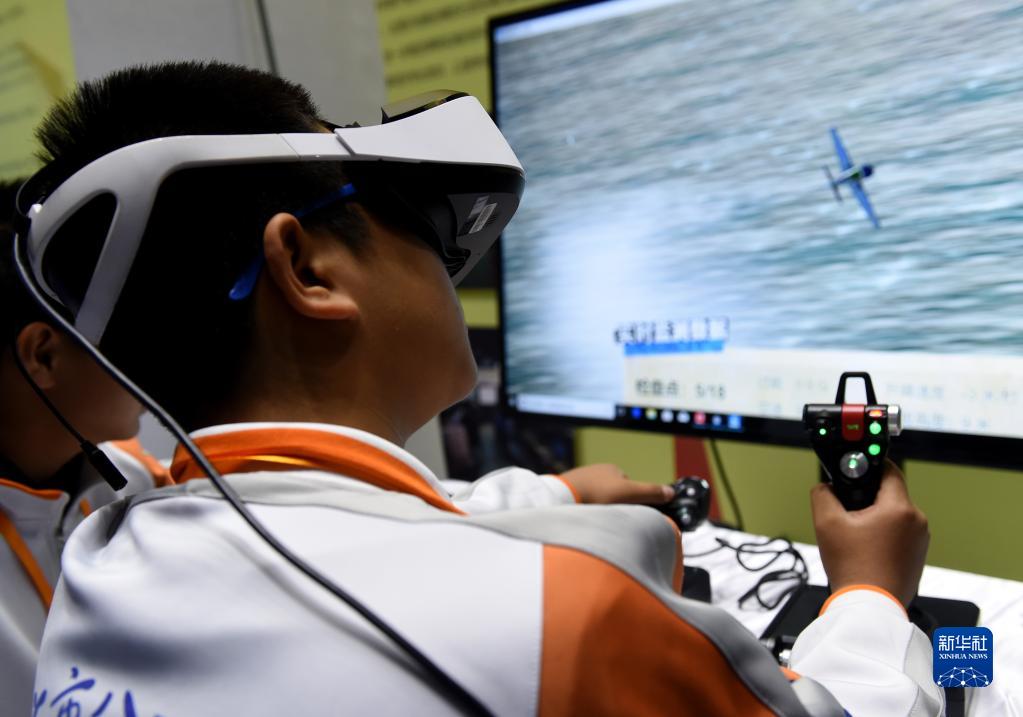 北京市八一學校的學生在北京市中小學生特色科技活動展示上體驗VR技術(2018年11月24日攝)。新華社記者 羅曉光 攝