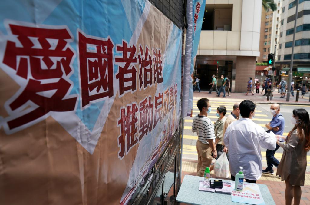 2021年9月21日,香港街頭舉辦“落實(shí)愛國者治港 推動(dòng)良政善治”街站宣傳活動(dòng)。 新華社記者 李鋼 攝