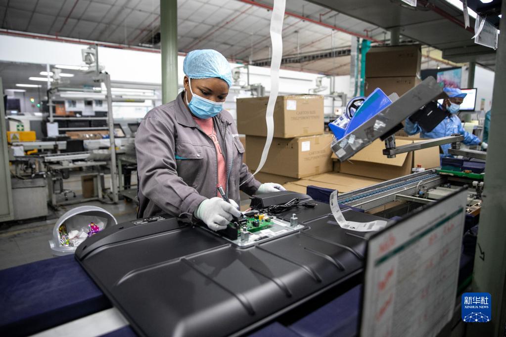2022年6月1日,當?shù)貑T工在南非開普敦海信南非工業(yè)園的電視機生產(chǎn)線上工作。新華社記者 呂天然 攝